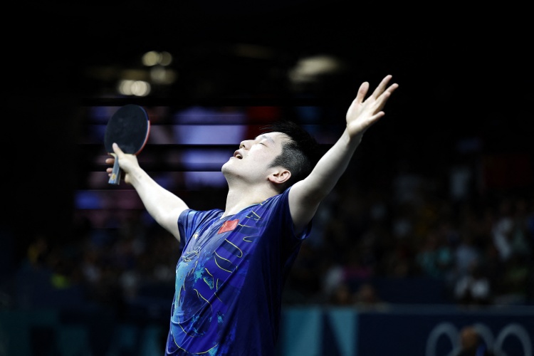 拿下最后一分的樊振东模仿姆巴佩的庆祝动作。